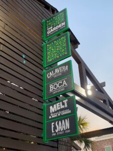 “TThe Garden at Palafox + Main is the real melting pot of Pensacola, offering something for everyone with a variety of different food trucks that fuse fun and function in one open-air food hall that’s covered to accommodate temperamental temperatures. From Nashville hot chicken to authentic Peruvian dishes to Tex-Mex and Pan-Asian concepts – The Garden pairs its food truck scene with local business via kiosk to deliver everything from acai bowls, charcuterie boards, poke, and brews.”