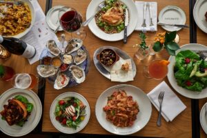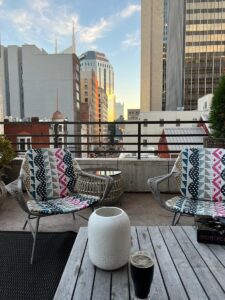 “Set on the fourth floor of the Fairlane Hotel, Ellington’s throws it back to an old-school era of dining. The room is set with mid-century-modern chairs and tables, brass details and tall, upright greenery, while a wall of floor-to-ceiling windows shows off views of downtown’s cityscape. The menu matches the mood with classics like oysters Rockefeller, topped with pink peppercorn butter, a modern riff on a Waldorf salad, and showstoppers like the lobster Thermidor and crispy cornish game hen. Go for happy hour to find $5 plates of truffled fingerling frites and half-priced cocktails, like the French 95 made with Belle Meade bourbon, citrus juices and a splash of prosecco.”