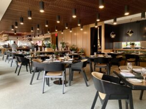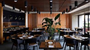 Refined restaurant with a wraparound terrace offering mid-century staples with a modern twist.