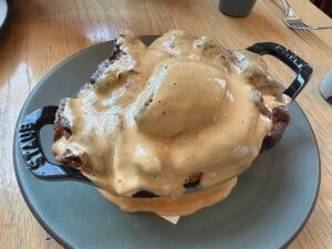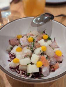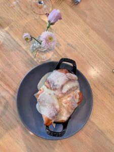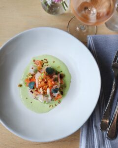 “Against a backdrop of white-tiled floors, blonde wood and navy banquettes, Henrietta Red serves a menu of seafood- and vegetable-heavy shareable small plates, as well as a robust raw bar selection. The menu stands out both for its simplicity and its clever take on classics. A bar room up front is lively and communal, while the dining room is a space designed for lingering and looking into the open kitchen with its wood-burning oven. Seats at the oyster bar offer a show as shuckers open the 15 or more varieties on hand every night. Chef Julia Sullivan manages to coax big flavors out of dishes like roasted cauliflower, chicken liver pate and smoked mussel toast.”