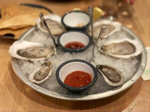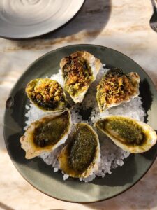 Airy, chic spot for oysters & elevated seafood small plates, plus a separate bar for cocktails.